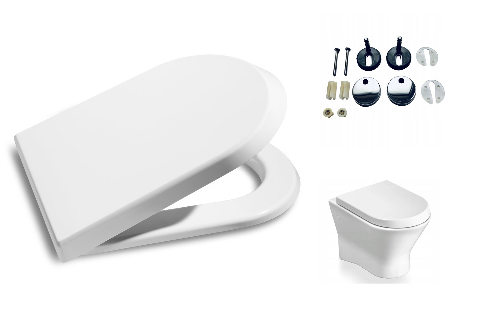 - Komfort – amortyzatory zamontowane przy obu zawiasach deski umożliwiają szybkie wypinanie na zasadzie zatrzasku oraz powodują wolne opadanie tak pokrywy jak i siedziska.