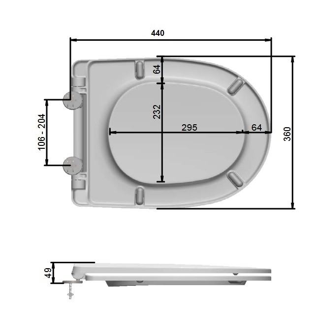 - Komfort – amortyzatory zamontowane przy obu zawiasach deski umożliwiają szybkie wypinanie na zasadzie zatrzasku oraz powodują wolne opadanie tak pokrywy jak i siedziska.