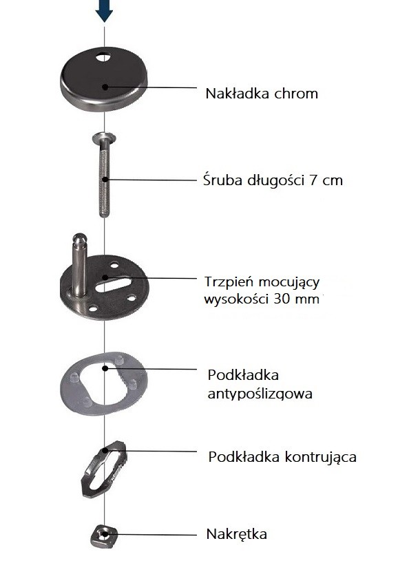 • Mocowania – wykonane ze stali nierdzewnej z podkładkami antypoślizgowymi.